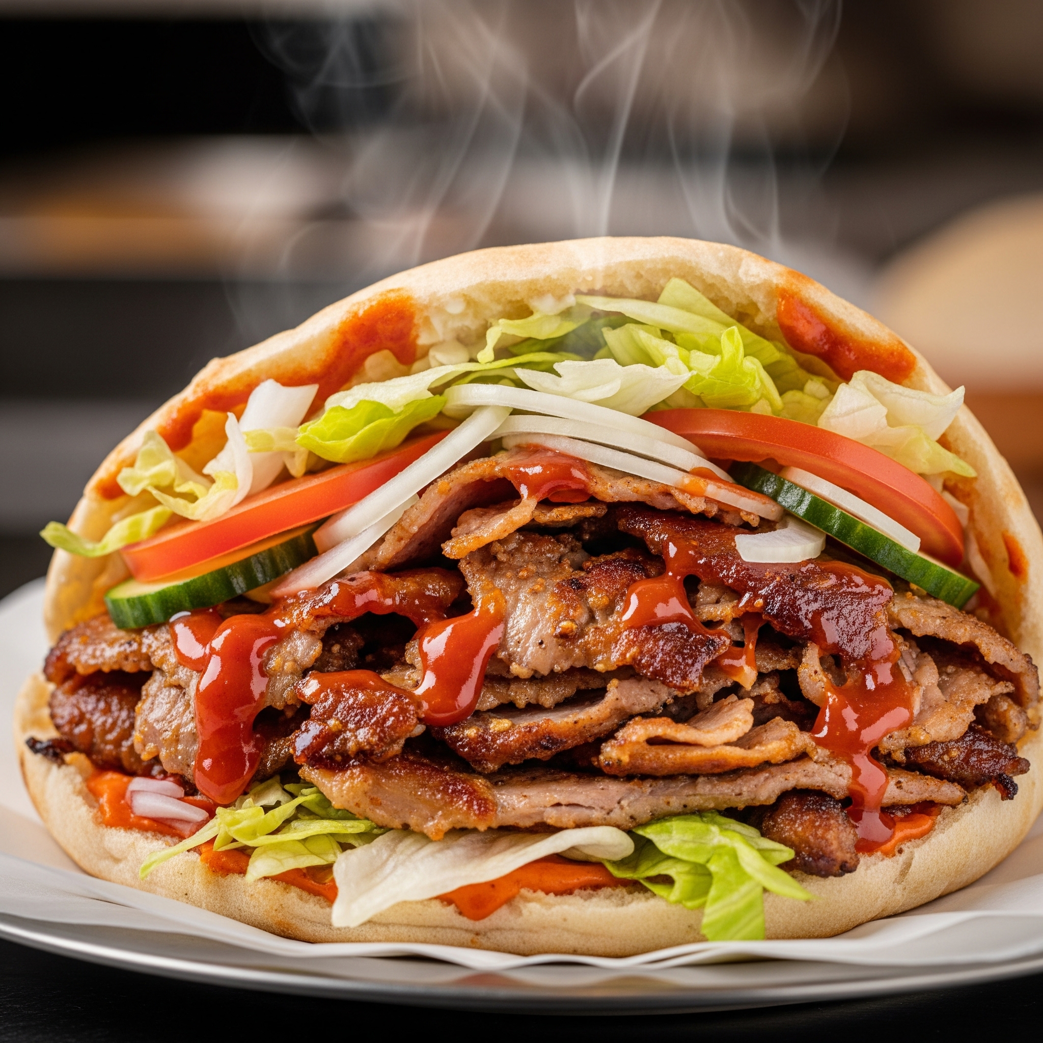 Der Döner ist mehr als nur Fast Food – er ist ein echter Klassiker der Straßenküche. In einem knusprigen Fladenbrot treffen sich saftiges, gewürztes Fleisch, frischer Salat, Zwiebeln, Tomaten und eine Auswahl an würzigen Soßen. Ob mit Kalb, Hähnchen oder in der vegetarischen Variante mit Falafel – der Döner bietet für jeden Geschmack etwas. Schnell, lecker und sättigend – kein Wunder, dass er so beliebt ist!